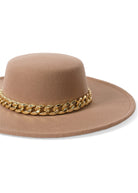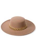 Elevate your everyday style with this glammed-up Chain Detail Fedora! The wide brim boasts a metallic chain trim detail that offers just a hint of shine, taking this very in-the-now accessory to an exciting new level.