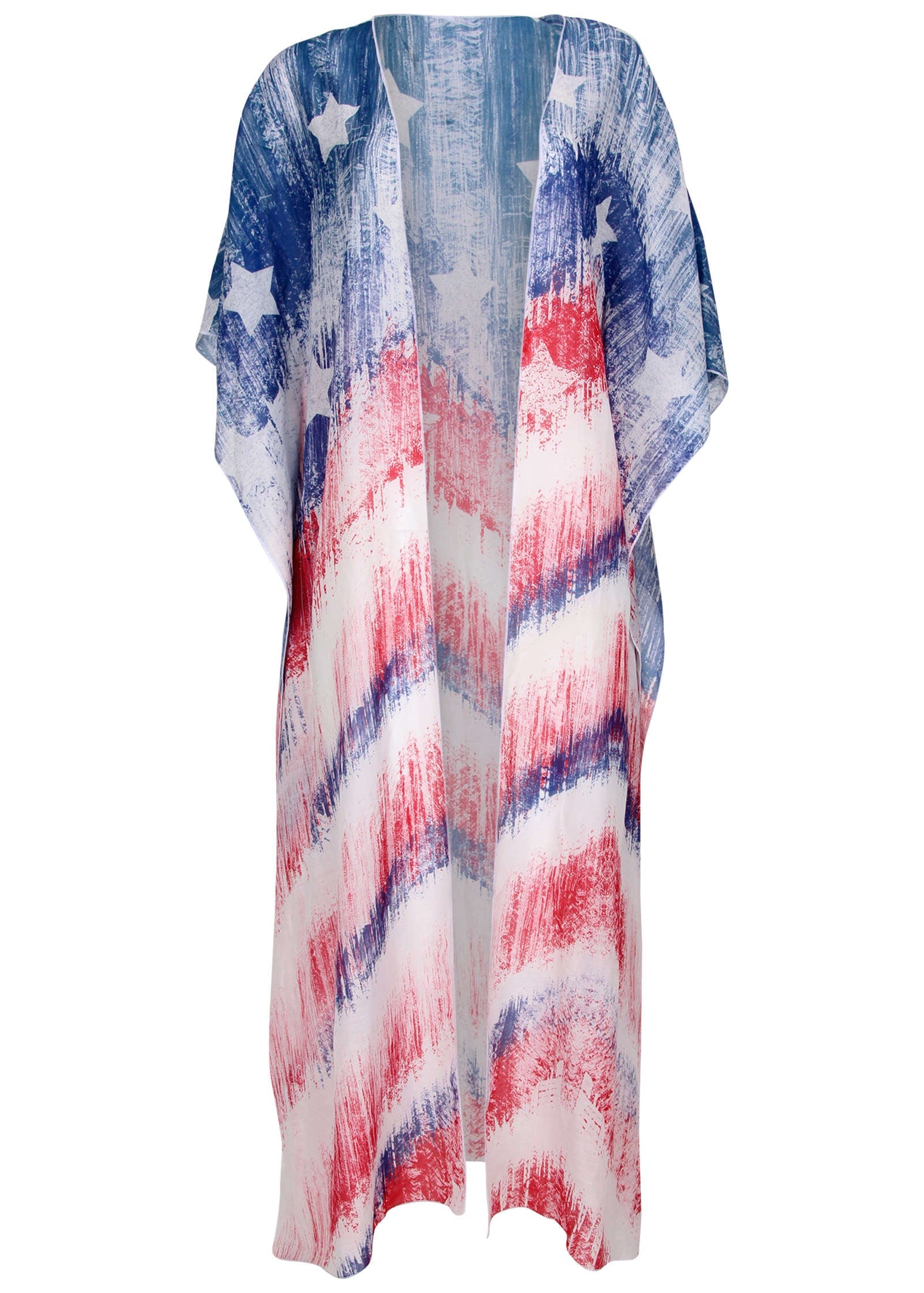 Long Kimono Cover-Up - Boardwalk Flag Cover-Up