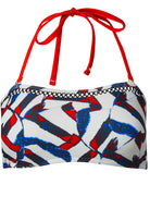 Pool parties and beach days require a bikini top that makes you feel as good as you look. This bandeau top delivers sleek summer style thanks to its playful lace-up back closure and open weave detail along the front neckline! Secure the halter tie behind your neck or remove it to catch even more rays.