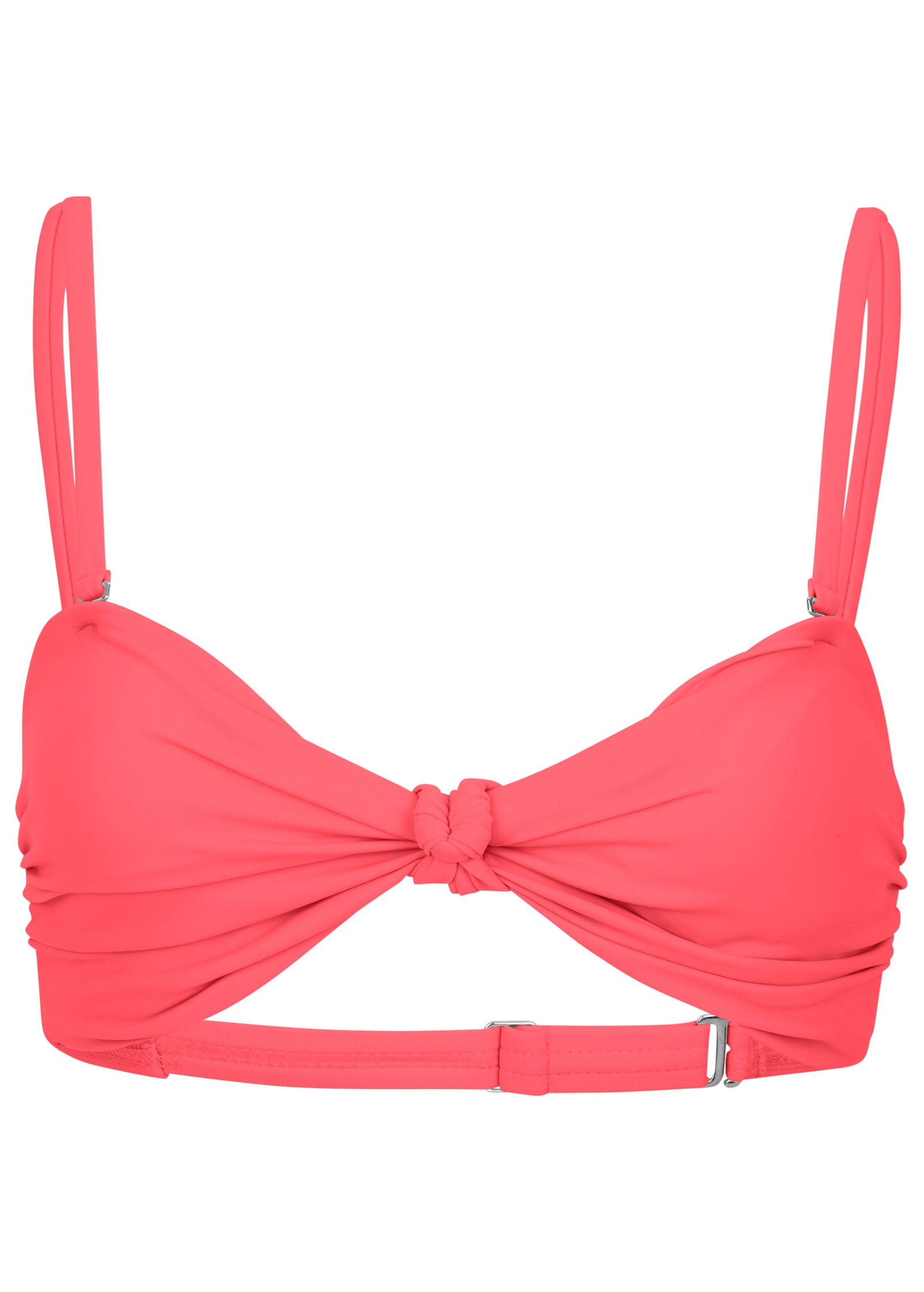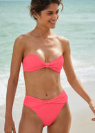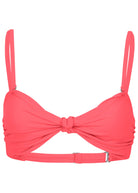 This chic bikini top is timeless and sophisticated with a knot detail at the center of the bust. Ruching along the cups adds subtle interest that elevates the look. Wear it with the straps attached or remove them to wear this top it as a bandeau and minimize tan lines. Either way the look is sleek and oh-so chic.