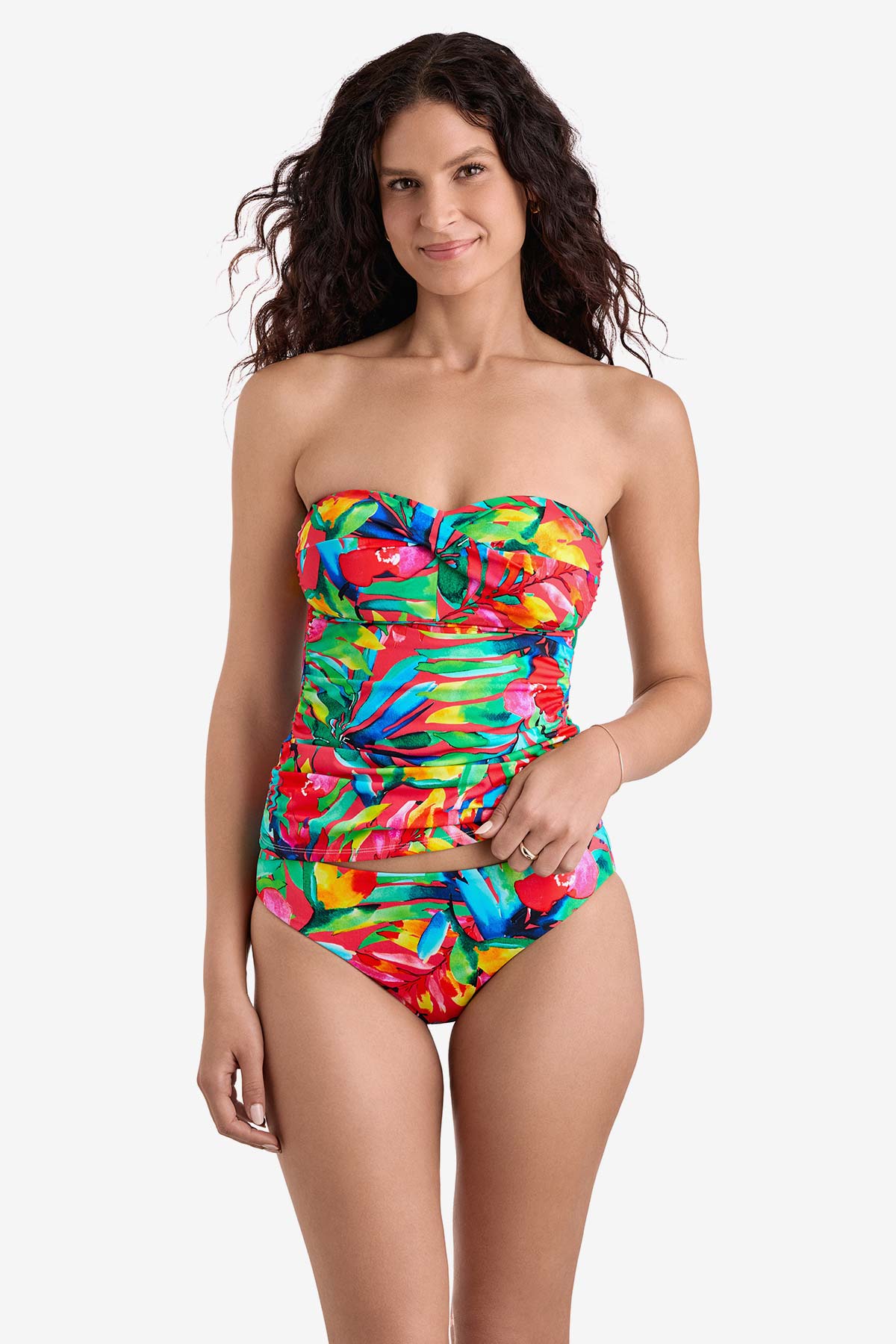 Find bandeau bikini tops and tube top swimsuits that are great for busts large and small! Many bandeaus, like our highly-rated Summer Breeze top, boasts underwire cups and/or stay-in-place boning at the sides which make them a supportive pick for busts of every size. In addition, these flattering structured bandeau bikini tops are easy to mix-and-match with all types of bottoms. Paired with a high-waisted bottom, they often take on a feminine and vintage-chic look. A low rise bottom adds a flirty edge, while a mid-rise bottom introduces a timeless element to the underwire bandeau’s trendy appeal.