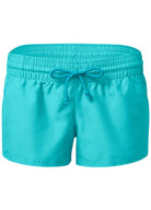 Sitting higher on the hips in a mid-rise cut, these board shorts offer a more covered-up option for swim bottoms. The elasticized and drawstring waistband secures easily, while side pockets add function while on the go before your beach trip.