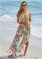 In case of upcoming getaways, pack these palazzo pants. Easy to pull on with an elastic waist and so breezy with side slits in each leg, they give instant laid-back vacay vibes. Whether you pair the bold design with a timeless solid suit or something more standout, this is a situation where the cover-up makes the swim look.