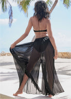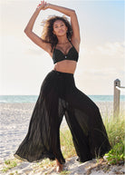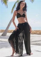 Ocean breeze not included, but highly recommended! These billowy cover-up pants pull easily over your suit, then secure at the waist with elastic and drawstring. Sheer fabrication showcases a hint of the suit underneath while pleats add a touch of texture to the soft, feminine fit. * Sizes: S (4-6), M (8-10), L (12-14), XL (16) * Plus sizes: 1X (18-20), 2X (22-24), 3X (26-28) * Sheer coverage * Mid-rise elastic waistband with drawstring * Flared leg * Poly. Imported