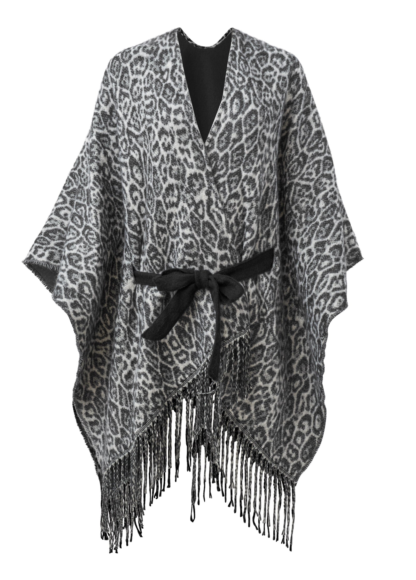 Leopard Wrap Knit Cape - Snow Leopard