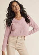 Embracing your soft side in cooler months is always encouraged. Pull on this ultra-plush sweater and you're instantly cozy. The classic V-neck style gets a modern twist with a cropped silhouette that's perfect for pairing with high-waist bottoms. * Sizes: XS (2), S (4-6), M (8-10), L (12-14), XL (16) * 18" approx. length; varies by size * Poly/acrylic/spandex. Imported
