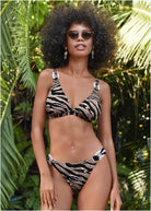 A sleek new take on the triangle top, this deep-V piece offers sexy support with thick straps featuring unique, decorative shell-textured rings.
