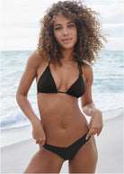 The classic triangle bikini halter with more to offer! The removable foam shaping cups add support as you enjoy a dip in the water. Featuring narrow spaghetti straps that tie behind the neck and back and cups that adjust by sliding along the strap that ties in back, you can create more or less coverage.