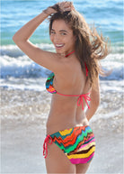 The classic triangle bikini halter with more to offer! The removable foam shaping cups add support as you enjoy a dip in the water. Featuring narrow spaghetti straps that tie behind the neck and back and cups that adjust by sliding along the strap that ties in back, you can create more or less coverage.