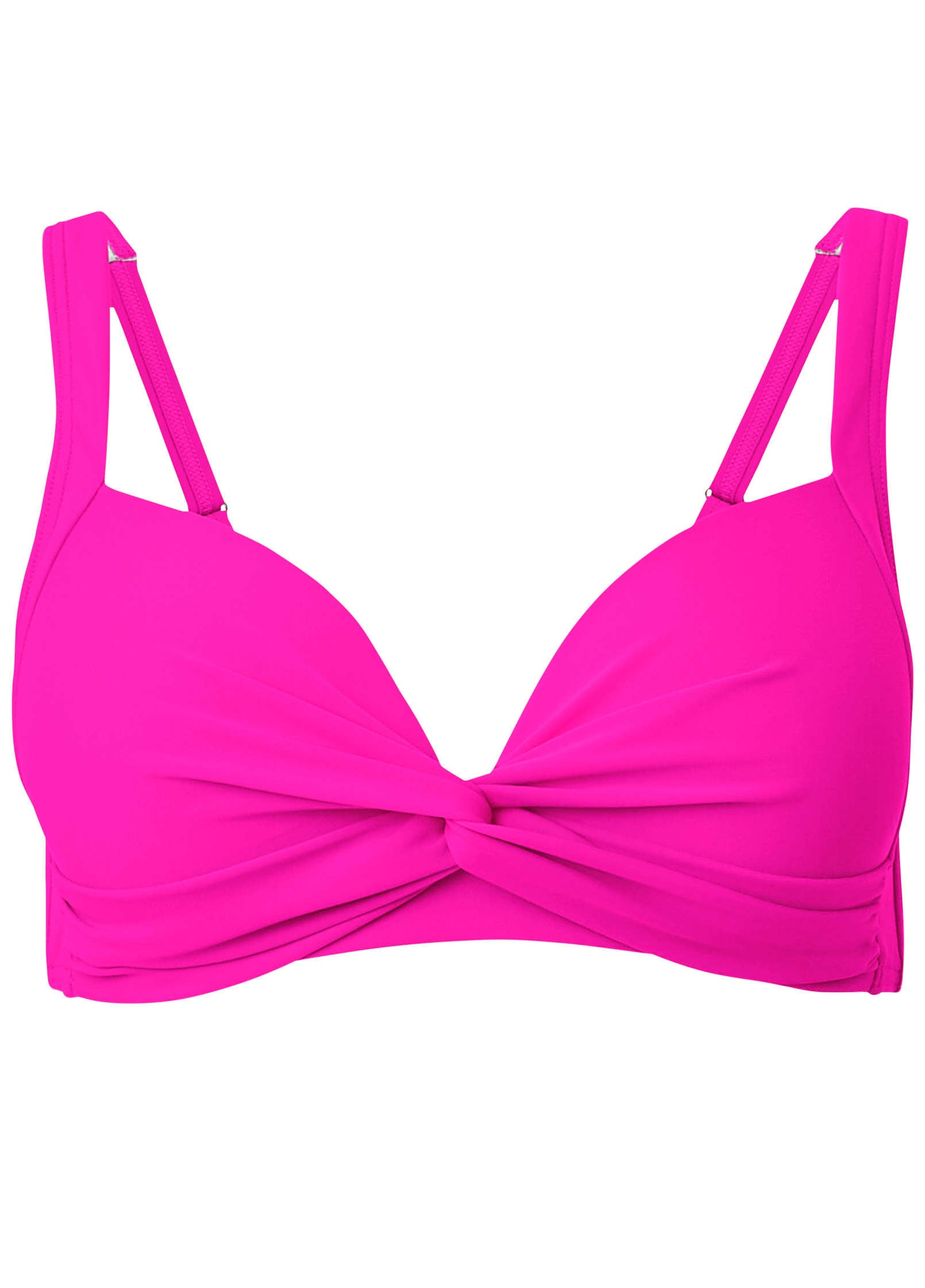 The triangle top is a classic, offering most bust sizes a solution. This classic bikini top is available in many colors and prints at VENUS. Find triangle swim tops from sizes 32 A to 40 G. This style ties around the neck and back with the classic string tie. Some of our triangle tops have a clasp or ring closure around the back. These swim tops make it easy to change on-the-go and they come in several beautiful styles at VENUS. Pair with a string bikini bottom or swim shorts for added coverage.