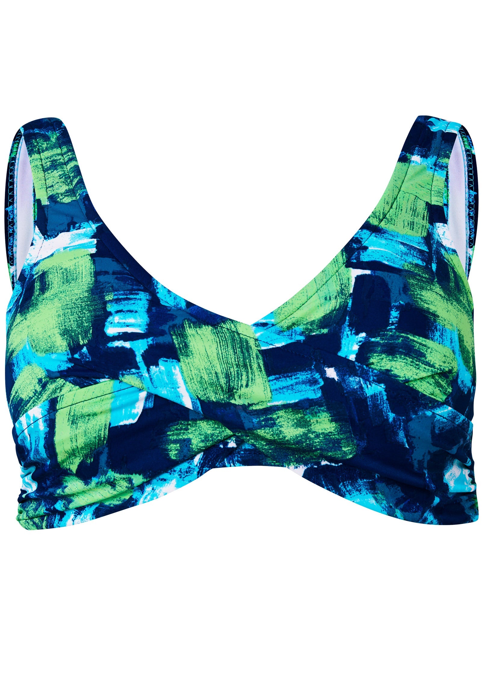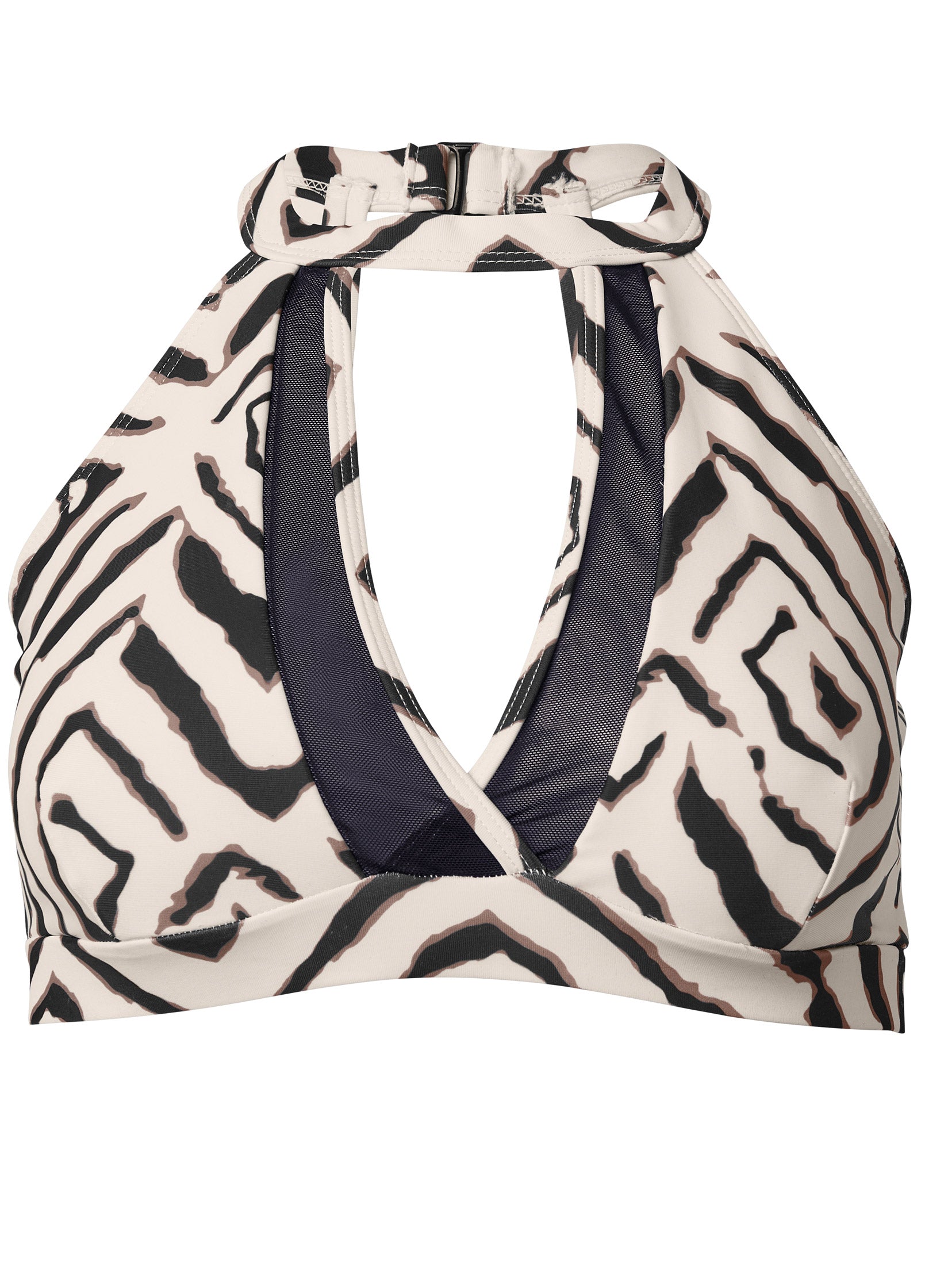 The triangle top is a classic, offering most bust sizes a solution. This classic bikini top is available in many colors and prints at VENUS. Find triangle swim tops from sizes 32 A to 40 G. This style ties around the neck and back with the classic string tie. Some of our triangle tops have a clasp or ring closure around the back. These swim tops make it easy to change on-the-go and they come in several beautiful styles at VENUS. Pair with a string bikini bottom or swim shorts for added coverage.