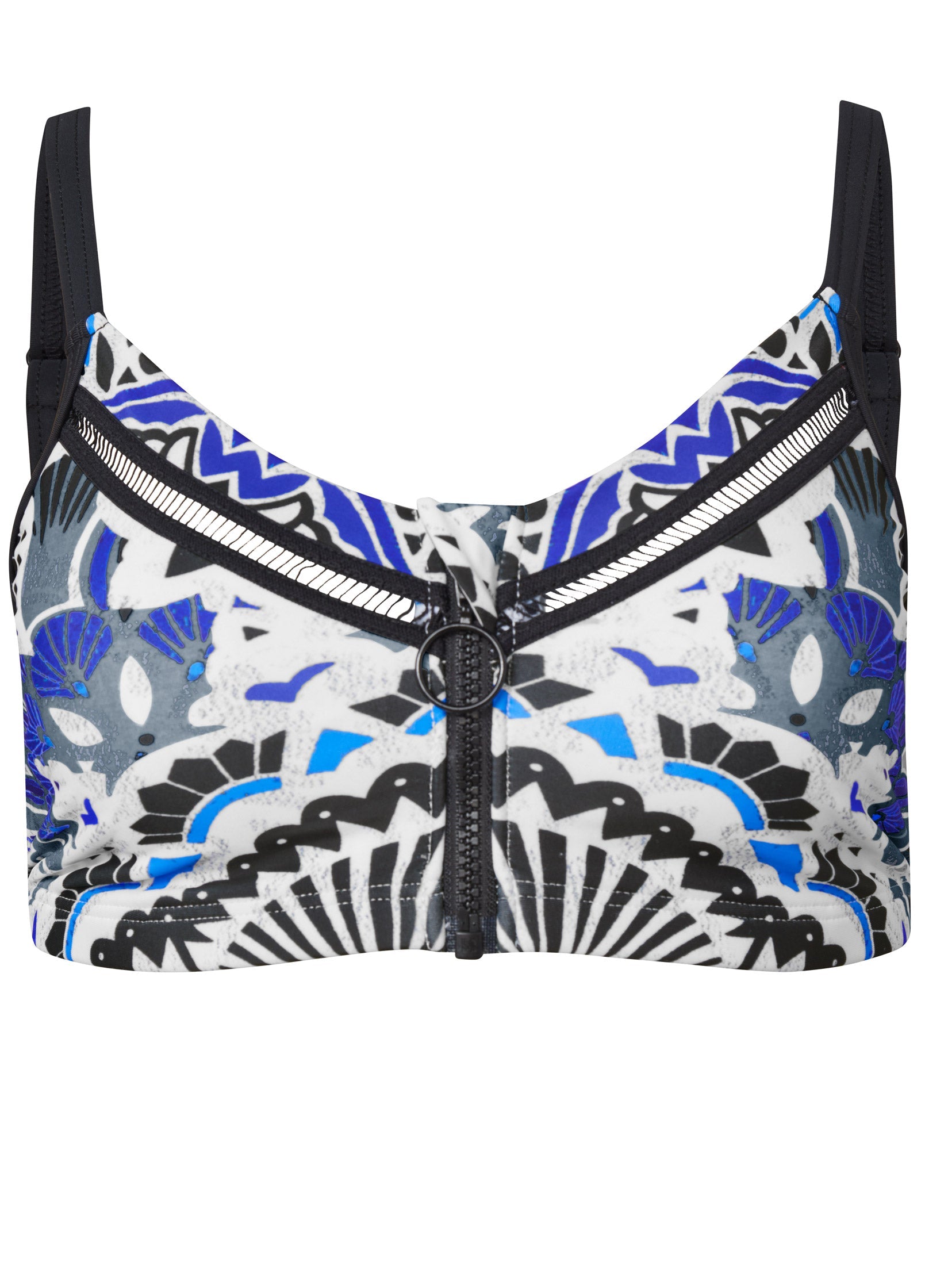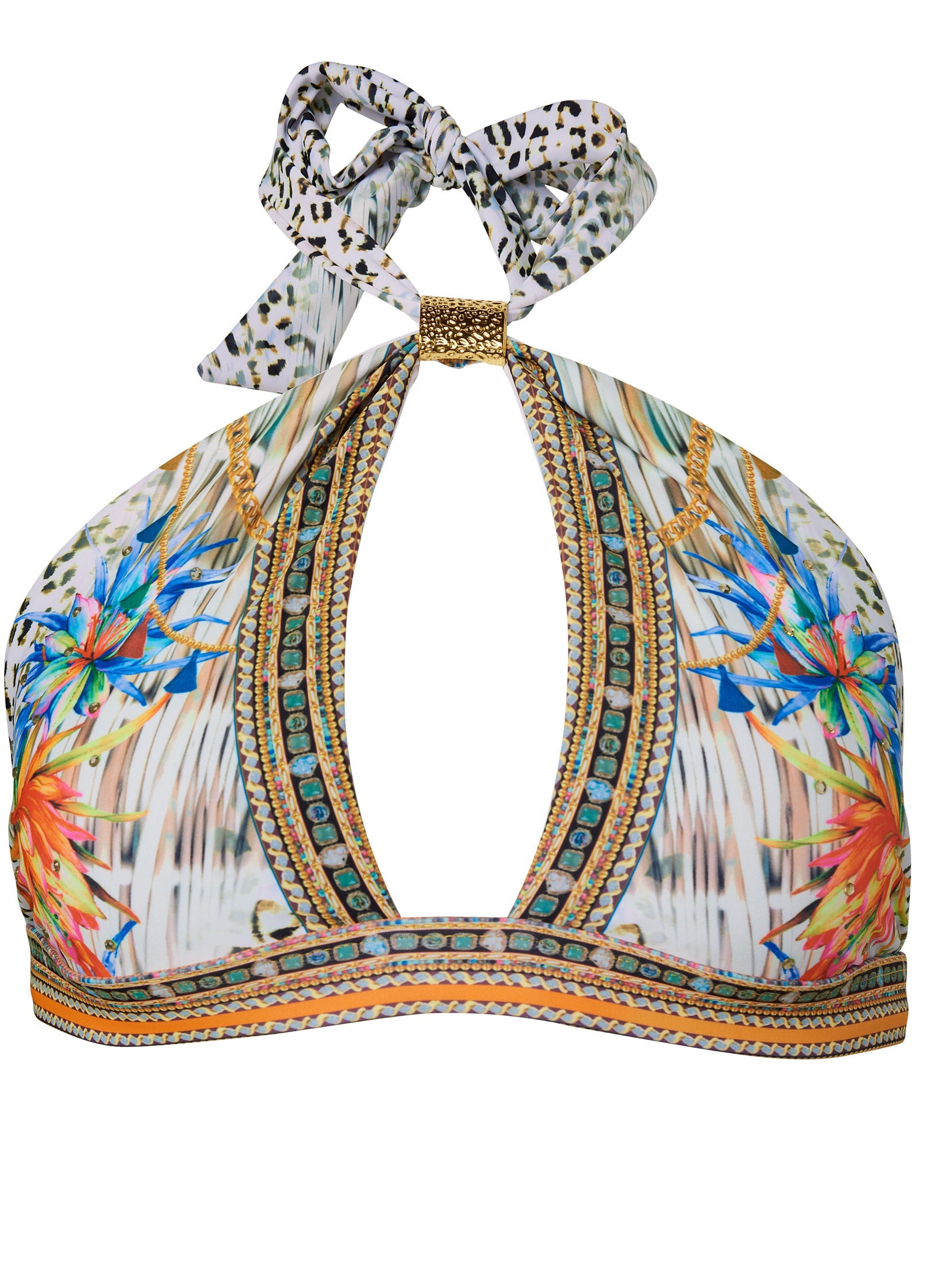 The triangle top is a classic, offering most bust sizes a solution. This classic bikini top is available in many colors and prints at VENUS. Find triangle swim tops from sizes 32 A to 40 G. This style ties around the neck and back with the classic string tie. Some of our triangle tops have a clasp or ring closure around the back. These swim tops make it easy to change on-the-go and they come in several beautiful styles at VENUS. Pair with a string bikini bottom or swim shorts for added coverage.