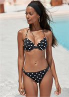 When in doubt, choose dots! These scoop-front bottoms boast the playful print, dipping slightly at center waist with moderate rear coverage that fits into any sunny-day plans. Looped fabric creates a peek-a-boo at the hips that gives these go-to bottoms an updated spin.