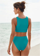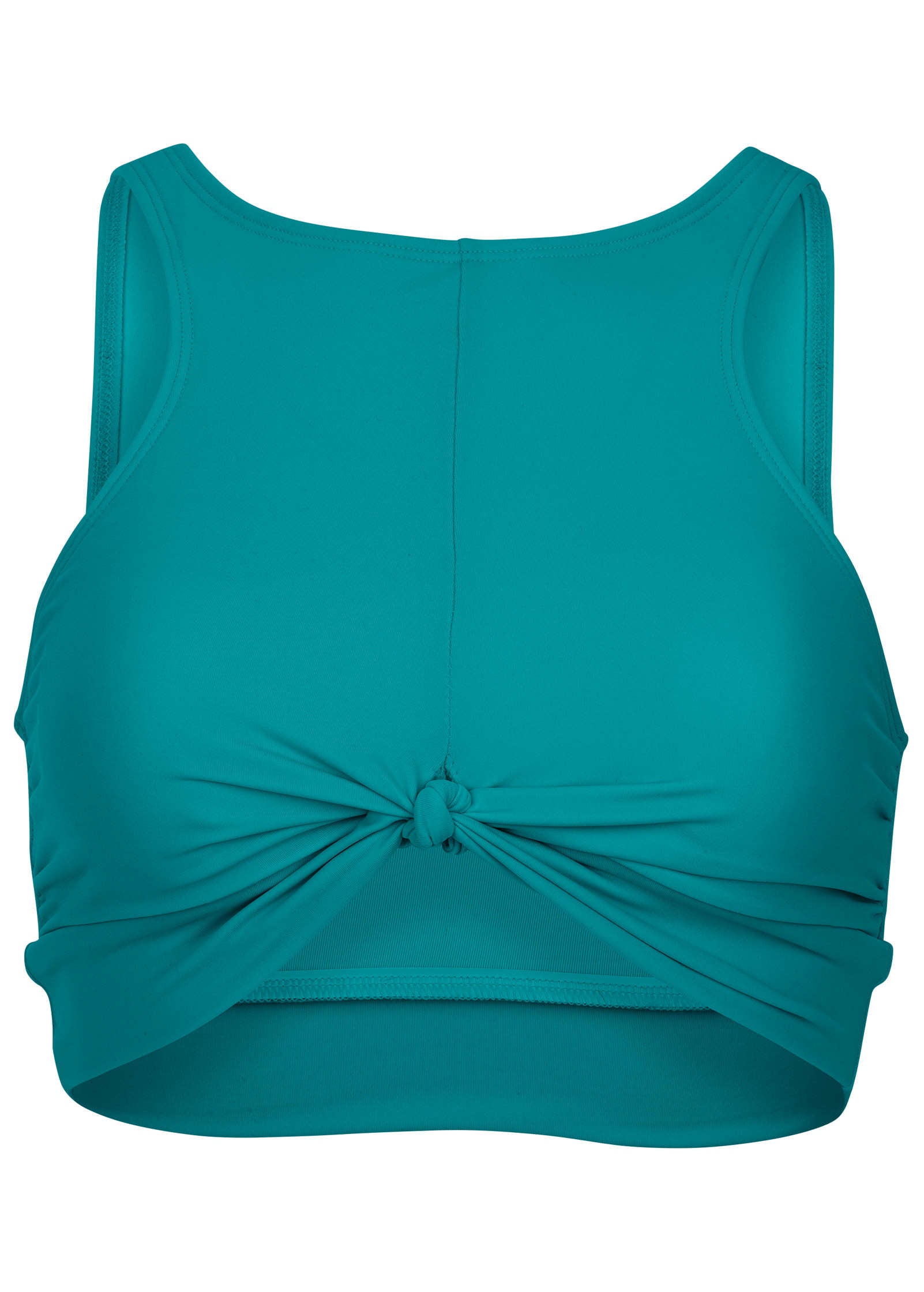 More coverage, more WOW. This high-neck bikini top features a chic knot detail at the center of the bust that together with the full back gives this suit the look of a tied-up crop top. We also designed it with a flattering contoured silhouette that dips inward above the bust, creating a soft and feminine shape.