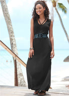 You're looking at the sultriest maxi dress you ever did see. Why? For starters, there's the strappy neckline that draws the eye right to your décolleté. Next up: the slits on either side of the skirt that rise to mid-thigh, showing off a peek of sunkissed legs underneath. For the grand finale, the unexpected V-back keeps all eyes on you, even as you walk away. * Sizes: XS (2), S (4-6), M (8-10), L (12-14), XL (16) * Sleeveless * Back tie closure * Elastic waist * Side slits * Unlined * 52" approx. length; varies by size * By Lascana for VENUS * Fabric has stretch * Viscose. Imported
