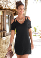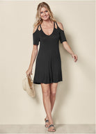 Keep it simple! Get back to basics in this fresh take on your favorite casual dress. Cut out straps complement cold shoulders for a unique take on a summer classic.