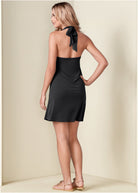 You're looking at the quintessential sunny-day dress. The twisted halter neckline is perfect for showing off sunkissed shoulders and also draws attention to the small keyhole detail underneath. This swingy mini dress has an effortless drape and easy, breezy silhouette that makes it a warm-weather must. * Sizes: XS (2), S (4-6), M (8-10), L (12-14), XL (16) * 31" approx. length; varies by size * Fabric has stretch * Unlined * Sleeveless * No closure * A-line * Recycled poly/elastane. Imported.