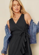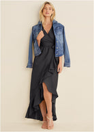 All of your favorite details wrapped up in one figure-flattering dress. Let's start with the V-neckline that highlights your decollete and visually lengthens your frame. Up next: the wrap silhouette that cinches your waist and creates an hourglass shape. To finish, a cascading high-low hem with flouncy feminine ruffles to show off your legs. For everyday or big moments, you can't go wrong.