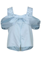 Glam meets effortless in this embellished cold shoulder top. With pearl and rhinestone-detailed straps, a chic off-the-shoulder neckline, and a breezy front overlay, it’s the perfect mix of flirty and polished. Whether you’re dressing up your daytime denim or pairing it with a sleek satin midi for a night out, this top is made to shine.