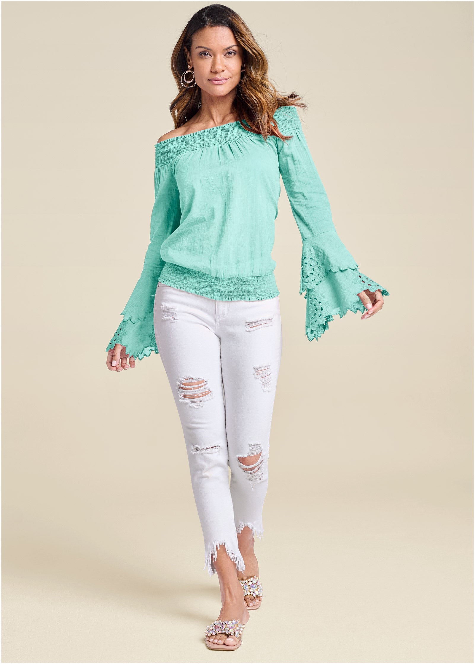 Off-The-Shoulder Top - Candied Shortbread Paisley