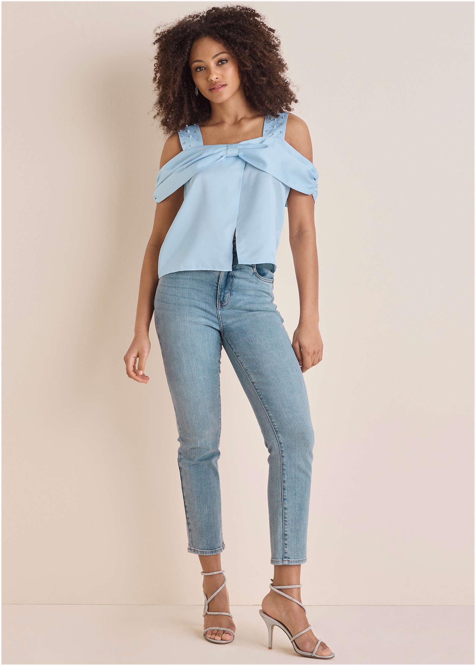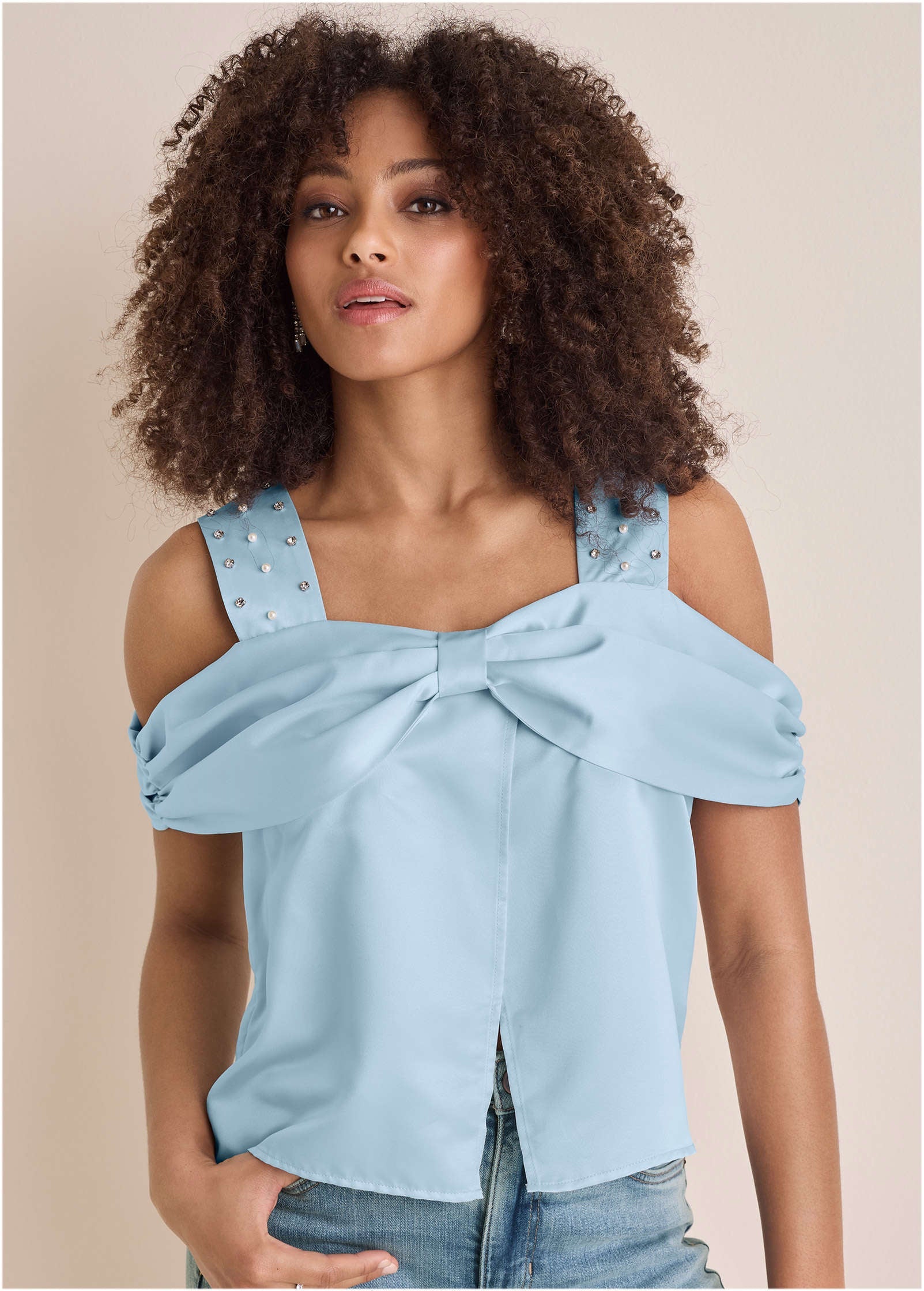 Cold Shoulder Wrap Blouse - Ensign Blue