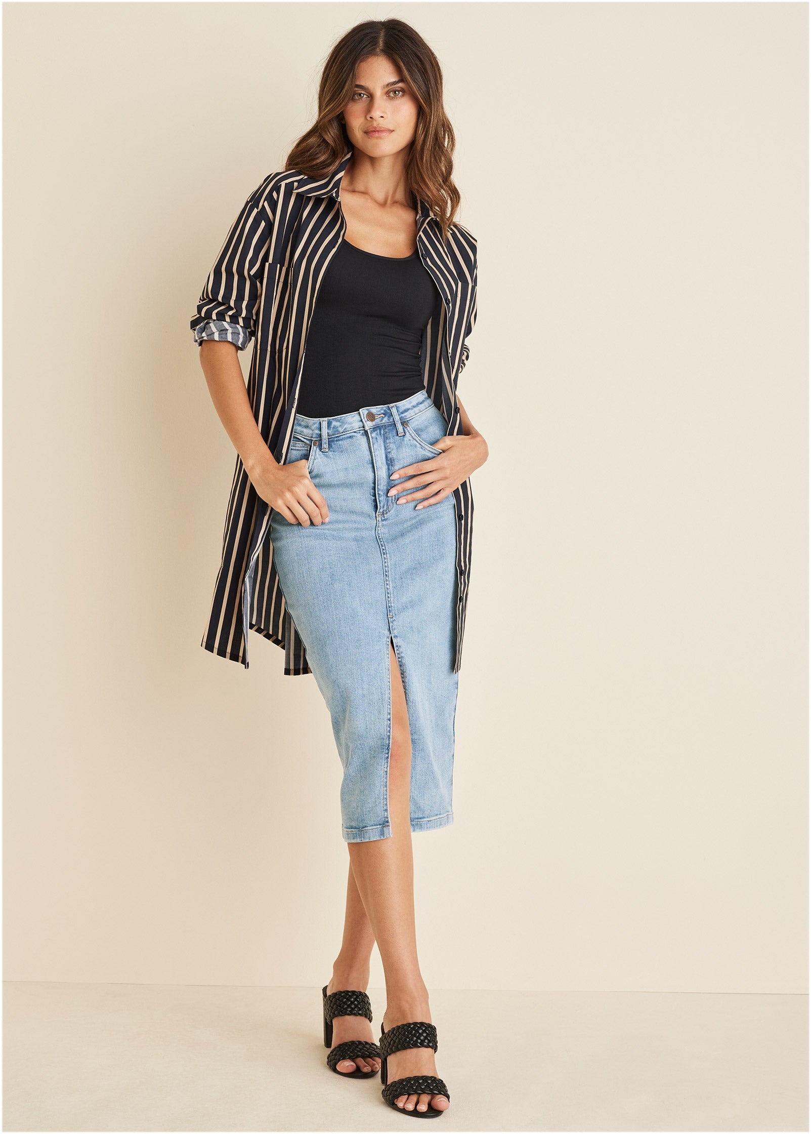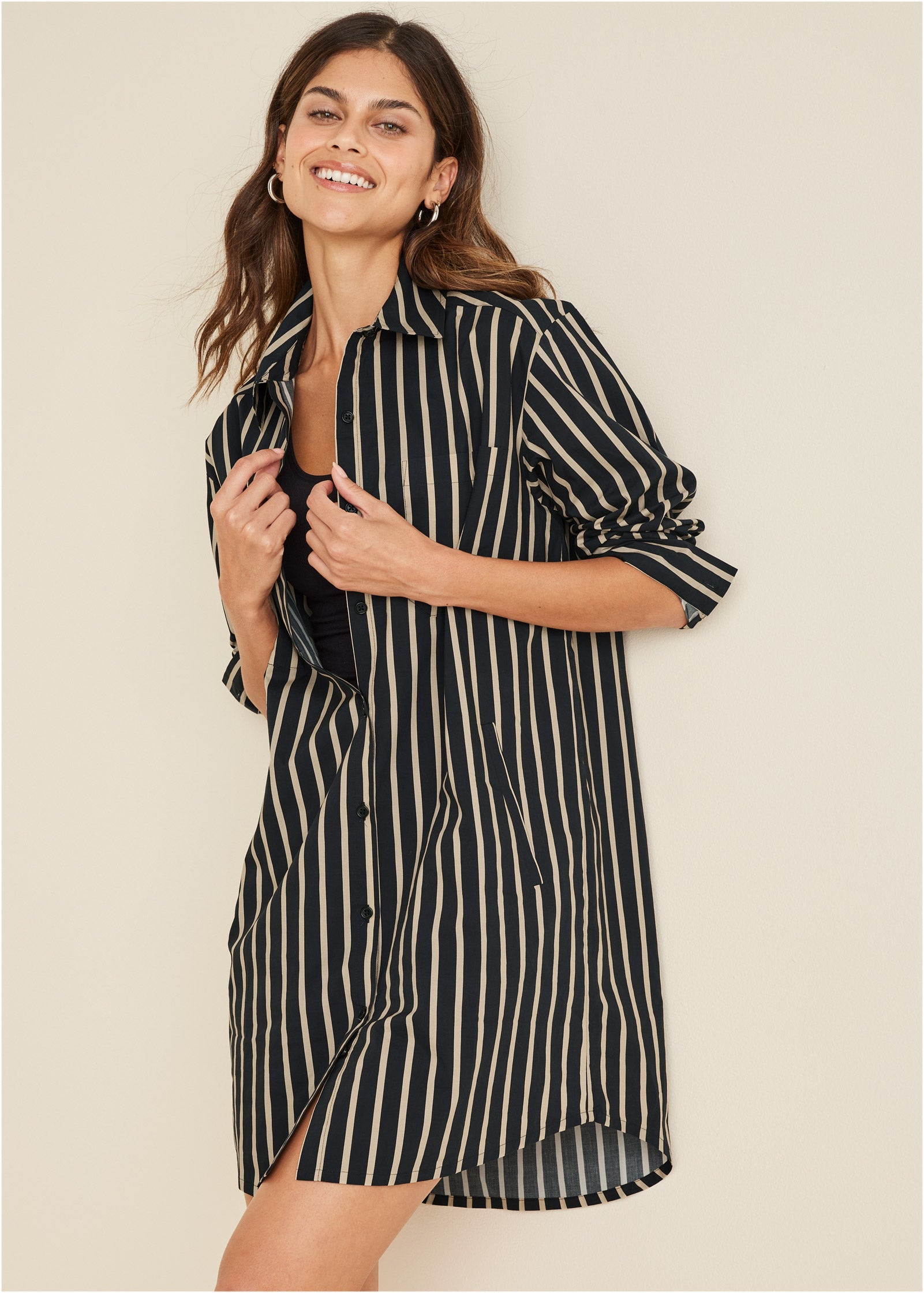 We perfected the wardrobe staple shirt dress. Done in our Clean Cut Cotton fabric, this one is lightweight yet durable and has a crisp, cool-to-the-touch feel. Consider it the blank canvas of your closet: go casual with sneakers, classic with a trench coat, dress it up with bold extras and heels, or even toss it over a bikini as a cover-up. The options are endless.