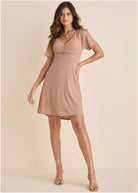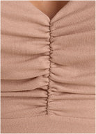 Shine bright like the star you are in this glitter mini dress! With a flattering V-neckline and a ruched detail at the neckline, this dress is all about making an entrance. The split sleeves add a touch of drama, while the glitter fabric ensures you sparkle all night long. Whether you're at cocktail hour or heading out for a date night, this dress is the perfect choice for turning heads. * Sizes: XS (2), S (4-6), M (8-10), L (12-14), XL (16) * V-neckline: A flattering and sultry cut. * Short sleeves with split design: Adds a dramatic flair to the silhouette. * Ruched detail at neckline: Creates a figure-flattering effect. * Glitter fabric: Shimmers and shines for a bold, statement-making look. * Fabric has stretch * Nylon/lurex/spandex/poly. Imported