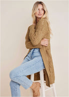 This duster is what layering dreams are made of. Roomy enough to wear on over your outfit, but fitted enough to still flatter your figure, this comfy duster will become one of your go-to cold-weather pieces. The cable knit pattern is made for the season, while large pockets are perfect for holding all the necessities as you lounge. Wear it over leggings or jeans for your cozies look yet. * Sizes: XS (2), S (4-6), M (8-10), L (12-14), XL (16) * Open front * Long sleeves * Front pockets * Acrylic. Imported