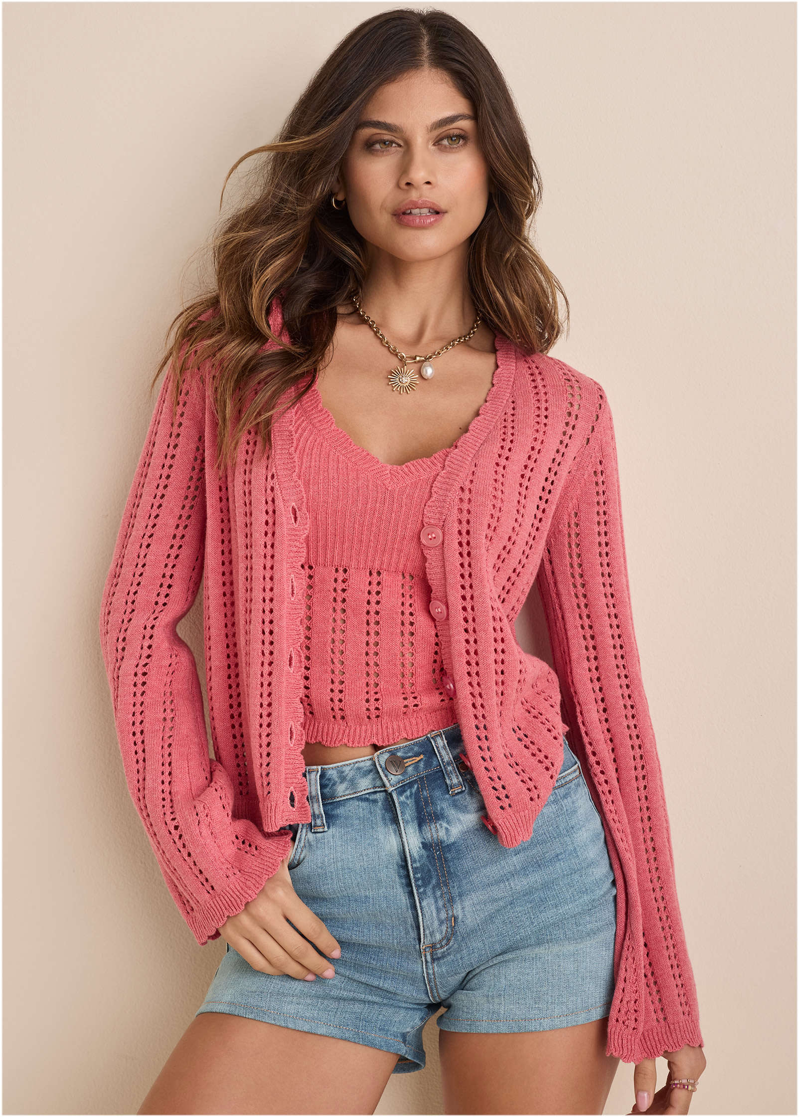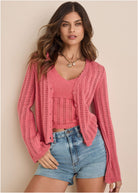 Pointelle Bell Cardigan - Paradise Pink