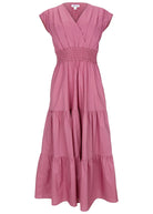 Unsure of what to wear? Pop on this poplin maxi! Made from crisp, breathable cotton poplin, this dress offers a perfect blend of comfort and style. Its flowing silhouette and maxi length create a graceful, flattering look that's ideal for any occasion. Whether you're strolling through the farmers' market or attending a summer soirée, this dress has you covered. * Sizes: XS (2), S (4-6), M (8-10), L (12-14), XL (16) * Plus sizes: 1X (18-20), 2X (22-24), 3X (26-28) * Available in petite sizes * Maxi length, from shoulder: 53" missy/plus; 49" petite * V-neckline * Short sleeves * Smocked waist * Fabric does not have stretch * Cotton/polyester. Imported