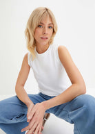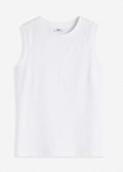 Who says basics have to be boring? This scoop cotton top is classic enough to go with any outfit -- and soft enough that you'll never want to take it off! The fabric has enough stretch to hug your curves, while still providing a flattering fit. The scoop neckline and sleeveless silhouette make it easy to layer this tank under a jacket or wear it solo. * Sizes: XS (2), S (4-6), M (8-10), L (12-14), XL (16) * Scoop neckline * Sleeveless * Organic cotton/elastane. Imported