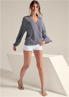 Upgrade your day-to-night wardrobe when you add this Banded Hem Top! Keeping on-trend with its flared bell sleeves and face-framing V-neck, this easy boho top boasts a fitted hem that makes it easy to blouse out when tucked, or wear untucked over equally-as-fitted bottoms.