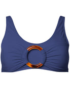 Embrace the sunshine in this coolly elevated look. This comfortable bikini top features a statement tortoiseshell ring at the center with gathered fabric that gives this standout piece some added dimension.