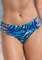 Just a peek of skin is all you need! Thanks to the stylish strappy accents at each hip, this moderate coverage, mid-rise bottom goes from a flattering yet understated basic to a flirty statement piece made for your favorite outdoor activities.