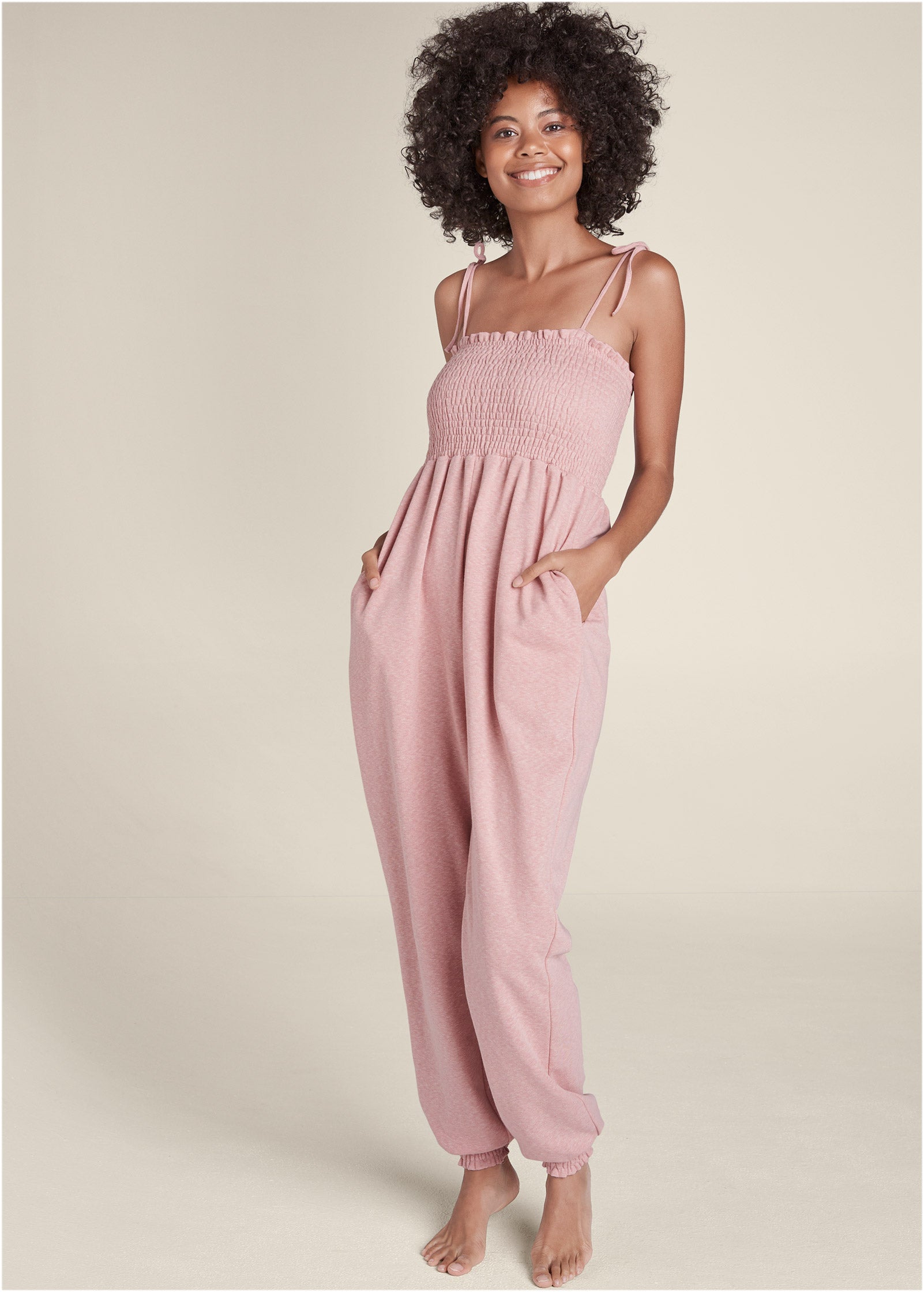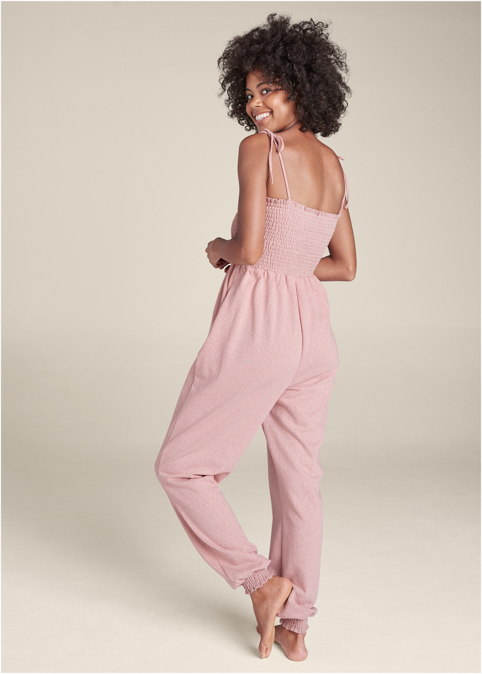 Smocked Lounge Jumpsuit - Heathered Pink