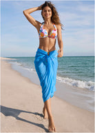 This cover-up is one of those beachy pieces that's just as much about adding to your swim look as it is about covering up. This breezy pareo can be tied and worn five different ways! Style it as a halter dress, a one-shoulder dress, a strapless dress, a midi skirt or a mini skirt. Trust us, you definitely want to pack this one in your suitcase. *O/S (one size fits most sizes 2-16) * For printed items, print placement may vary * Sheer coverage * Poly. Imported