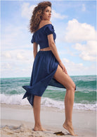 When it comes to covering up, do so with confidence! This fun and flirty cover-up skirt catches the ocean breeze with its asymmetrical sharkbite hem. The elastic waist secures as high as you prefer, pairing perfectly with the coordinating crop top for a complete pool- or beach-side look. * Sizes: XS (2), S (4-6), M (8-10), L (12-14), XL (16) * Plus sizes: 1X (18-20), 2X (22-24) * Elastic waist * Sharkbite hem * Cotton. Imported