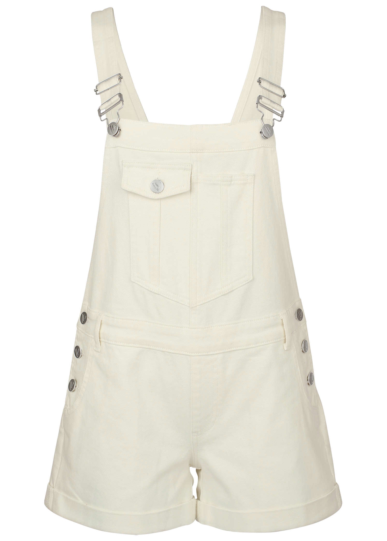 V-Back Denim Overalls - White Denim