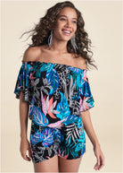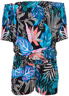 Bahamian Palm Off Shoulder Romper - Blue Multi
