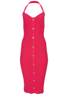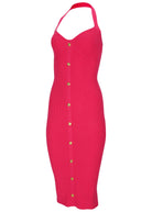 Button Front Halter Midi - Azalea