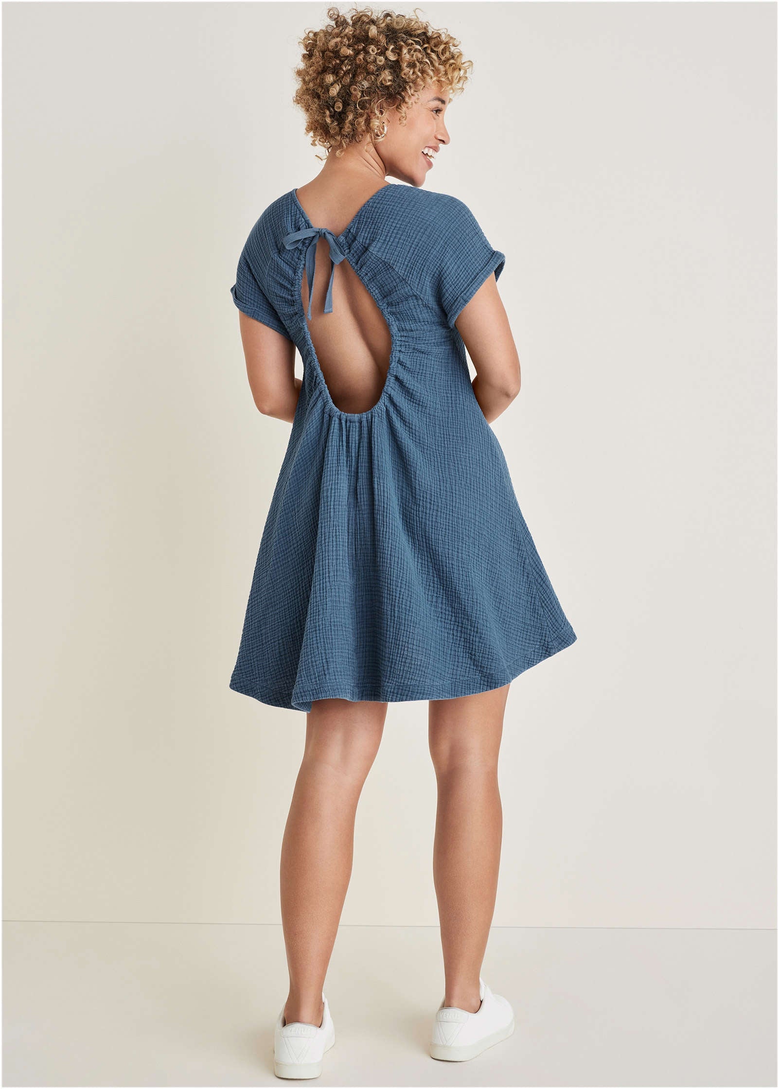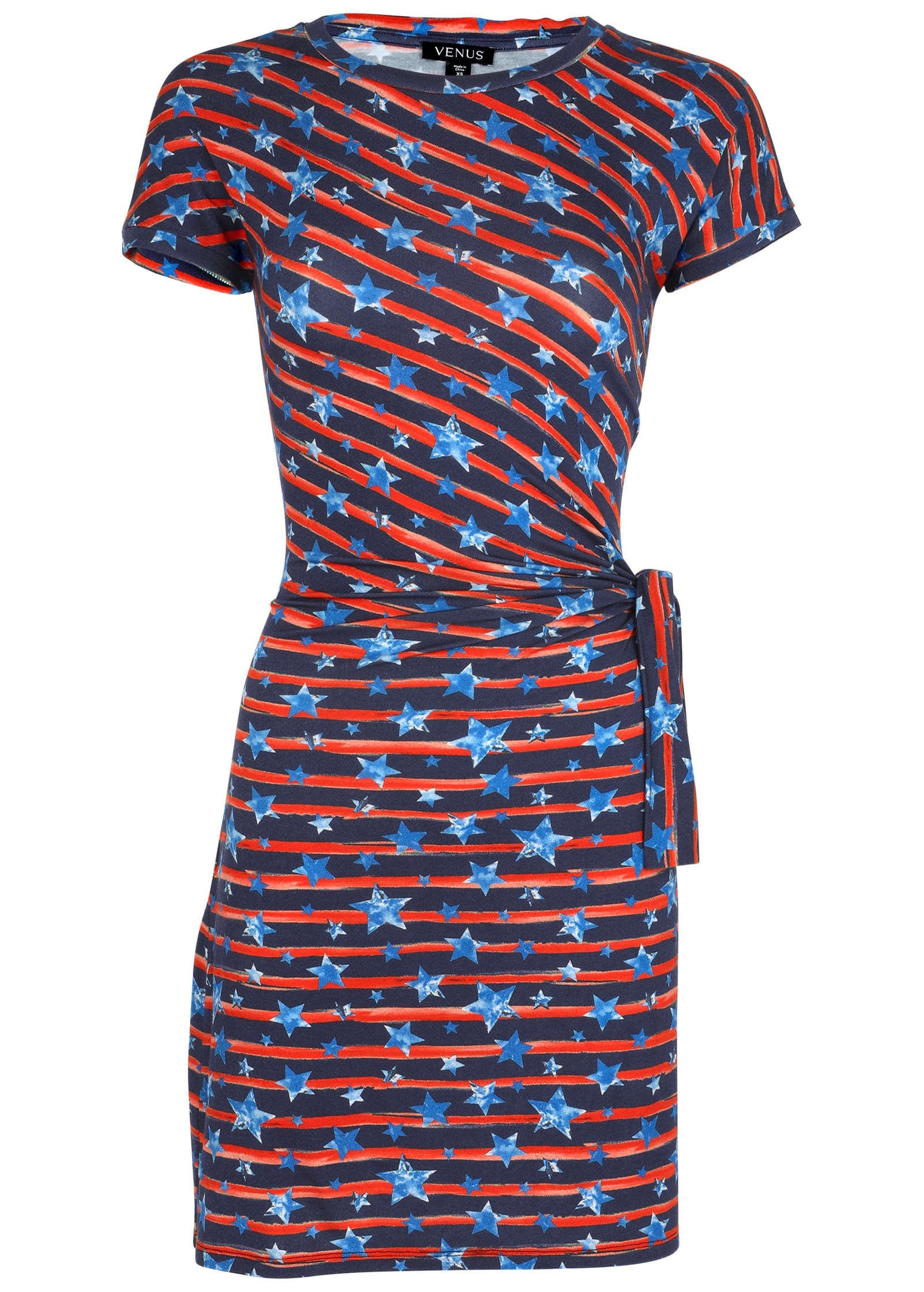 Tie-Front T-Shirt Dress - Dark Gettysburg Gouache