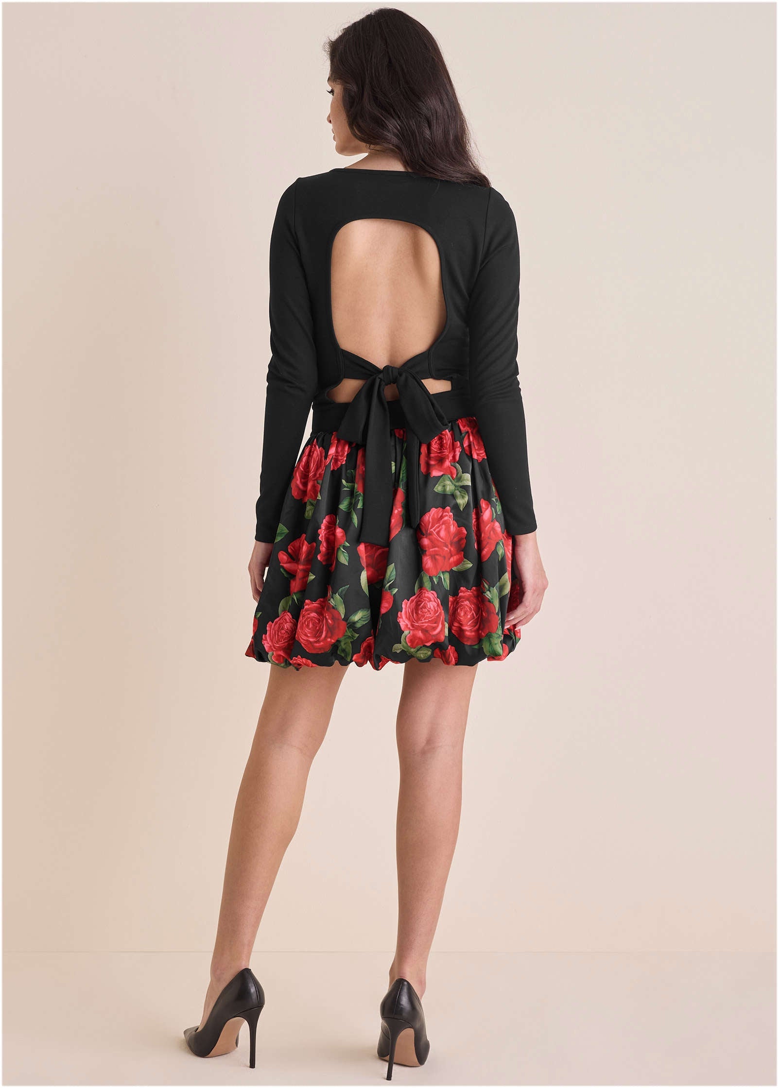 The party's your playground in this Long Sleeve Bubble Hem Mini—a playful dress that makes every season feel special. With a classic crew neckline, long sleeves, and a fun bubble skirt, it’s equal parts sweet and statement-making. The dramatic back cutout with a bow and invisible back zipper complete the look with a touch of surprise. Wear it with heels for warm-weather date nights, then add tights and booties when the temps drop—this dress does it all! * Sizes: XS (2), S (4-6), M (8-10), L (12-14), XL (16) * Crew neckline: Classic and chic * Long sleeves: Perfect for transitional weather * Bubble skirt: Flirty and playful * Back cutout with bow: Adds a dramatic twist * Invisible back zipper closure: Sleek and easy * For printed items; placement may vary * Poly/spandex. Imported