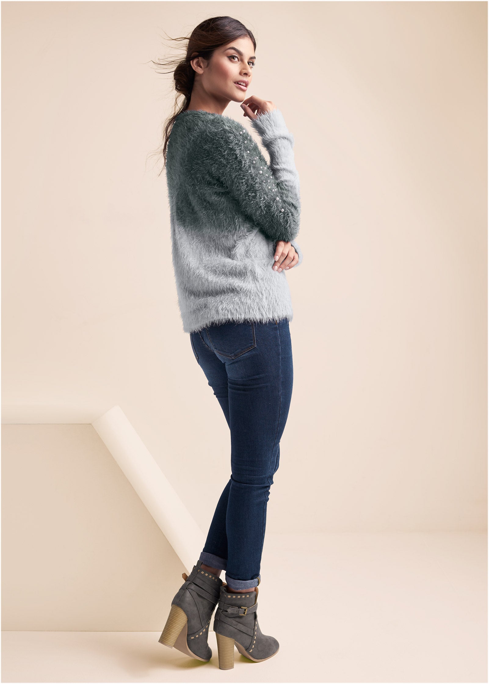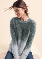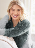 Cozy Pearl Trim Sweater - Grey Multi