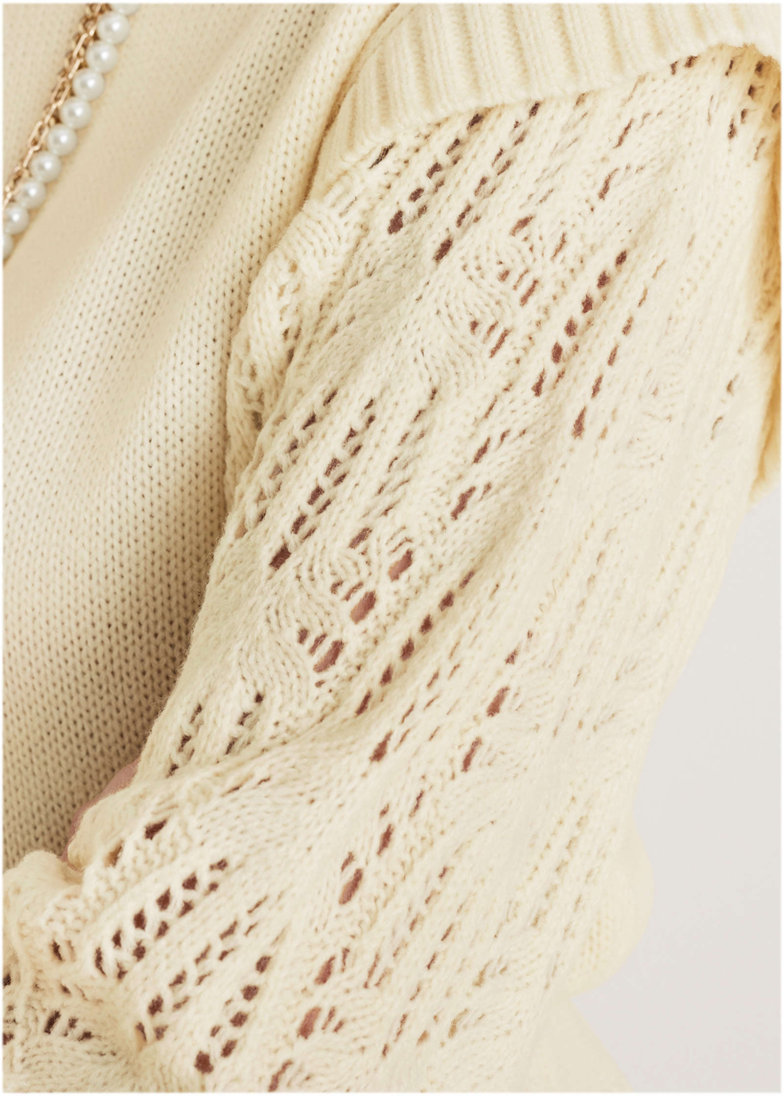 Pointelle Sleeve Crew Neck - Off White