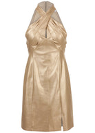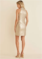 Faux Leather Mini Dress - Gold Metallic