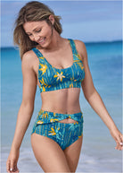Look good and do good for the environment in these high-rise swim bottoms designed with sustainable fabric made from recycled plastic bottles. This style features a ruched waistband with a keyhole detail in front that reveals a playful peek of skin.