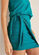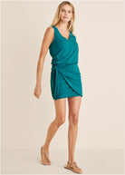 V-Neck Side Wrap Mini Dress - Teal