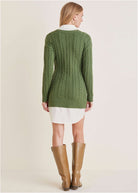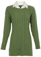 No need to do the heavy lifting—this layered-look sweater dress does the styling work for you! Giving the look of a classic cable knit sweater dress layered over a crisp collared shirt dress, this style gives a polished and slightly preppy vibe that's perfect for the season. With a mid-thigh length, this flattering and easy-to-throw-on piece pairs perfectly with your favorite tall boots. * Sizes: XS (2), S (4-6), M (8-10), L (12-14), XL (16) * Collared neckline * Long sleeves * Fabric has stretch * Viscose/polyester/nylon. Imported