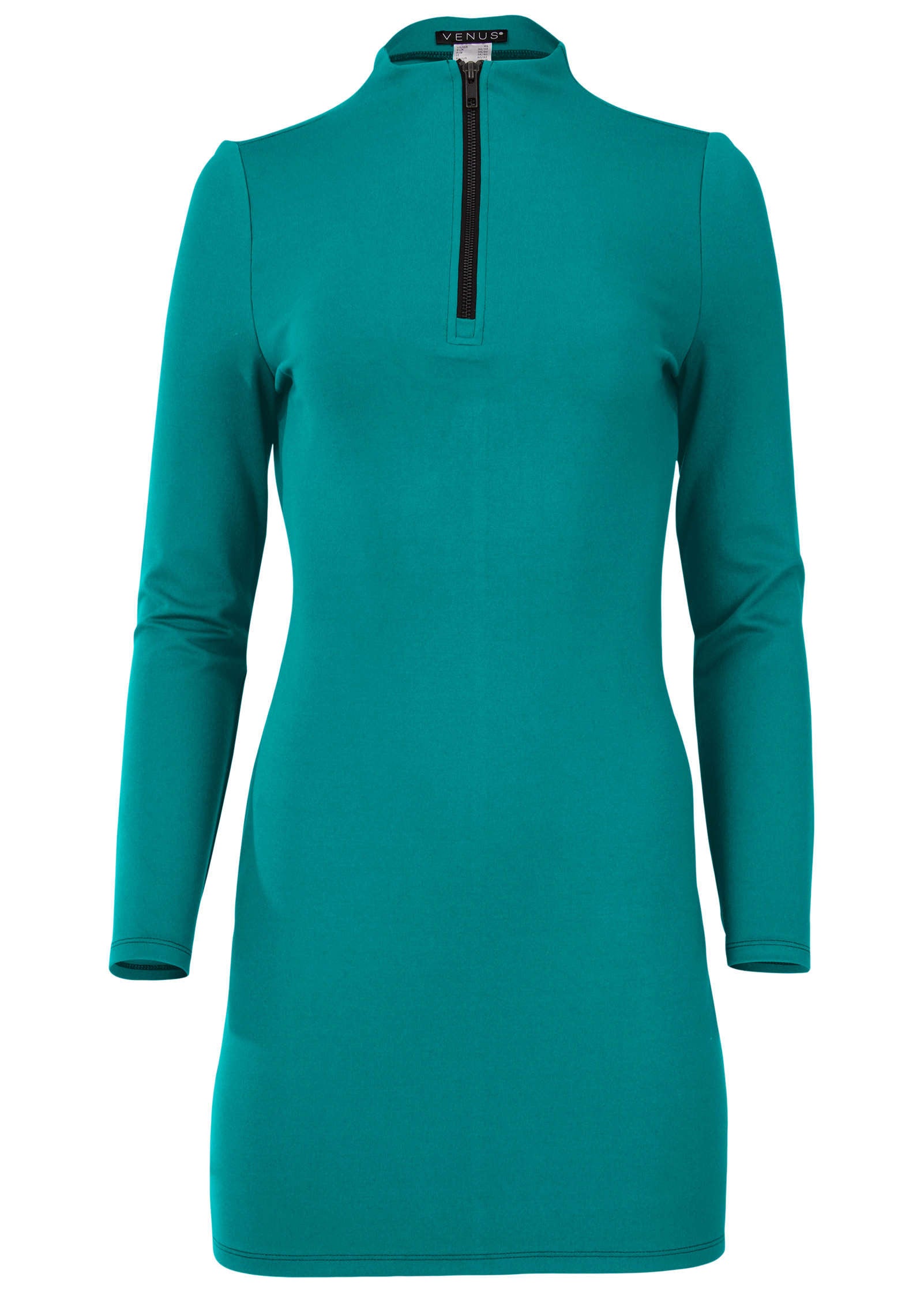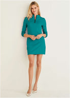 This modern mini dress has a sporty vibe with a mock neck and quarter-zip front. It's cut close to the body in an almost-A-line shape, skimming over your figure to create a clean silhouette. Done in our Ponte Perfect fabric, it looks refined, but feels relaxed thanks to low-key stretch that's ultra comfy and made to flatter.