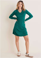 V-Neck Mini Sweater Dress - Deep Lake